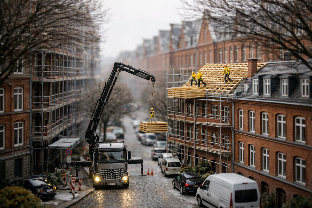 Wir unterstützen Sanierungen im Bestand mit präzisen Hebearbeiten – effizient, sicher und abgestimmt auf laufende Betriebsabläufe.